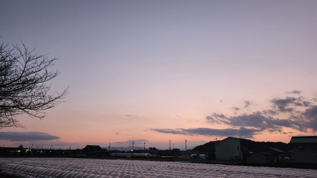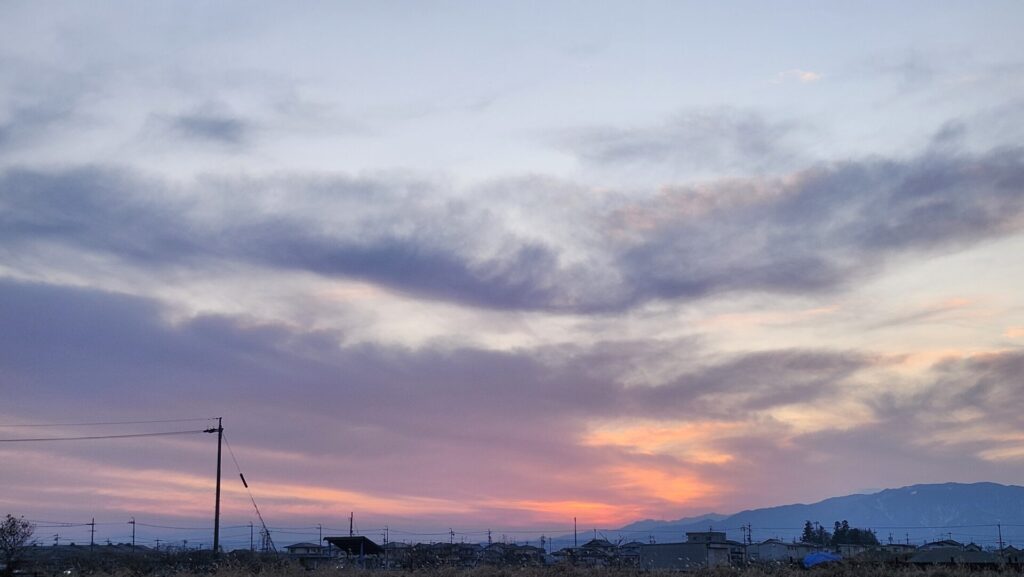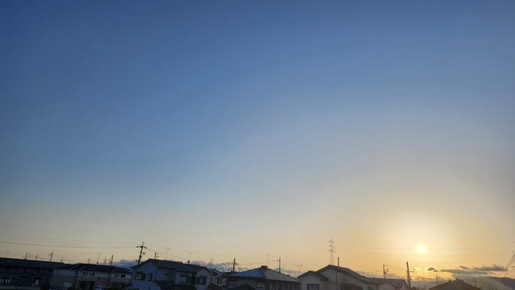 2日の夕空の様子、ちょっと雲がありつつ、緩やかなグラデーションが美しかったです。