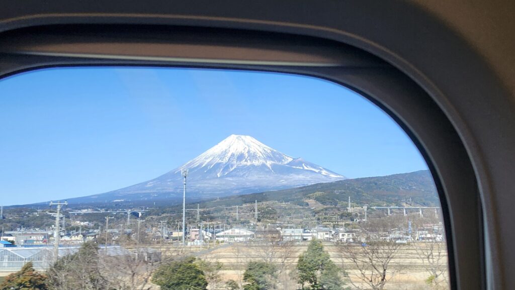 翌9日、新幹線で関東へと向かう途中です。今度は快晴の空、富士山がしっかりと見えていました。