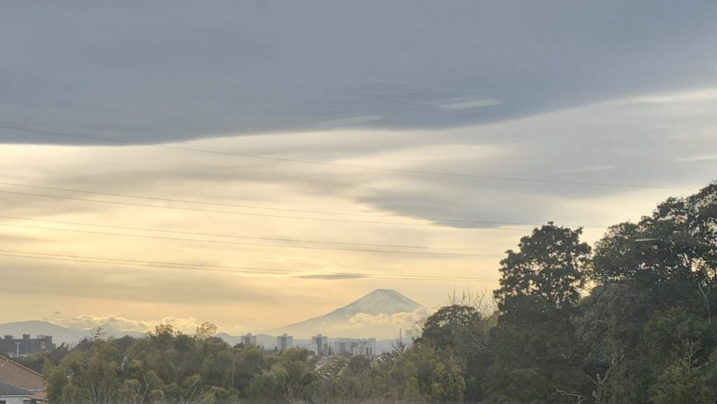 10日、横浜からの富士山の様子です。怪しい雲が広がる中で、富士山が浮かび上がっています。